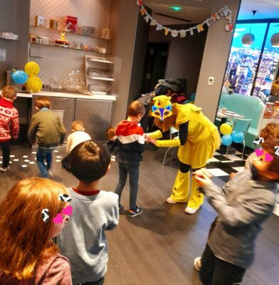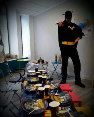 - Il arrive chez vous 30 minutes avant le début de la fête pour se préparer et être prêt pour l’accueil des enfants à l’heure prévue de son anniversaire.